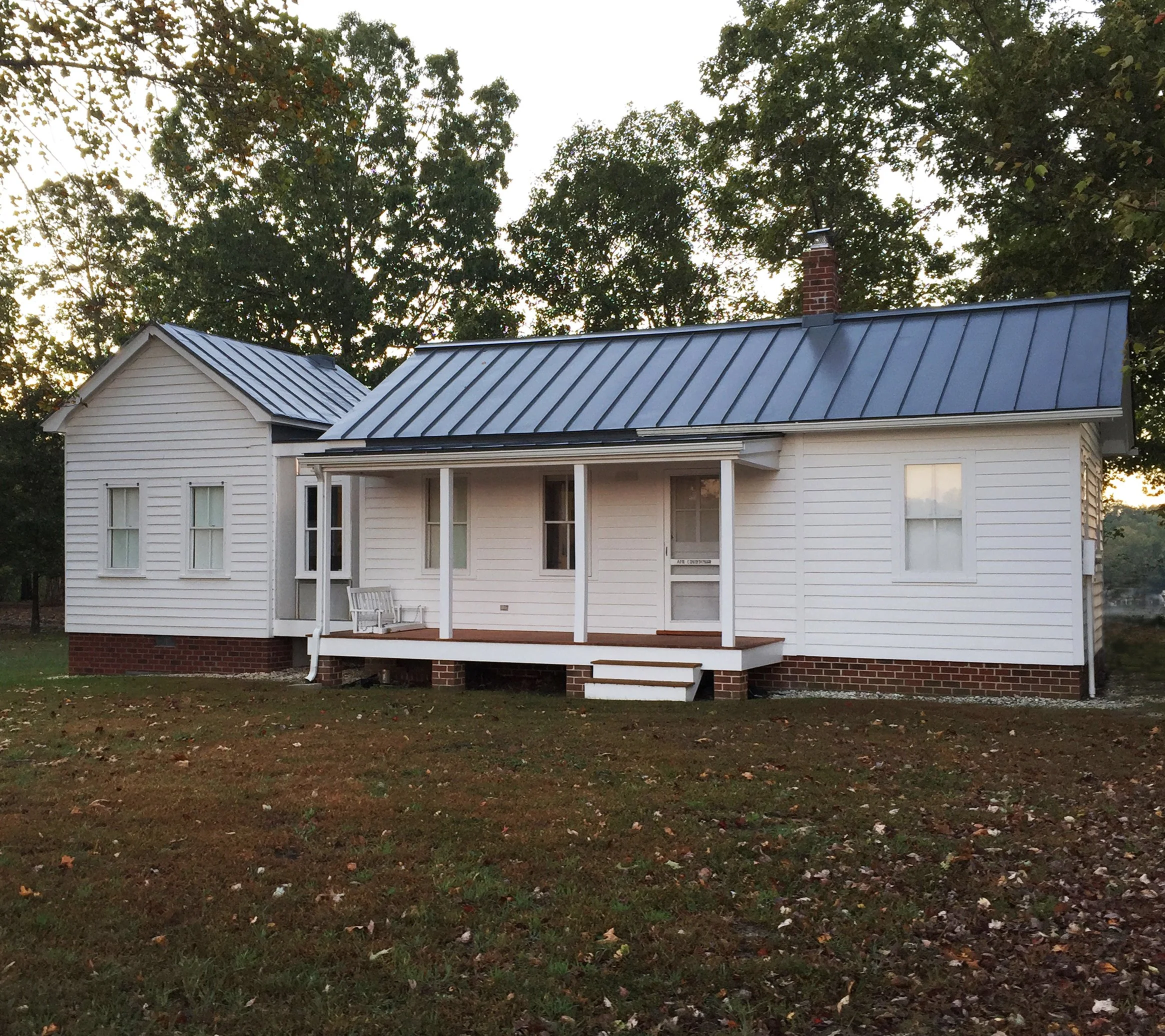 This waterfront vacation house embraces sustainability and the concept of recycling building materials to another level with the reuse, rehabilitation, and relocation of two older, vernacular structures. An early 20th century roadside barbershop and a mid 19th century kitchen building are joined into a small cottage in tidewater Virginia. The two abandoned wood frame structures were moved by truck in different phases to the narrow five acre peninsula on the Yeocomico River. The buildings were renovated and upgraded with insulation, new roofing, and additional salvaged windows to create bright open interiors and views to the water.