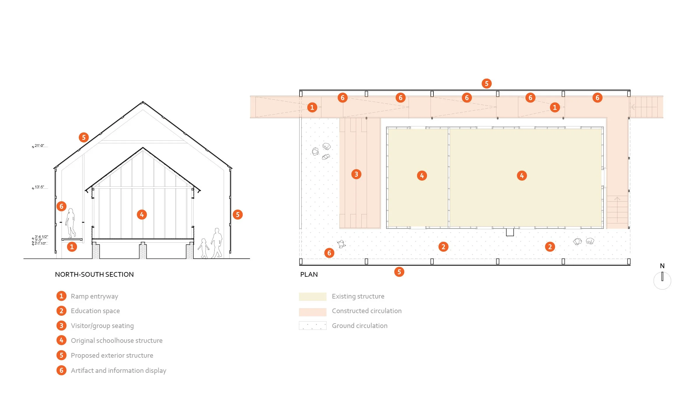 PRORAM: educational pavilion, protection for historic structure, renovation