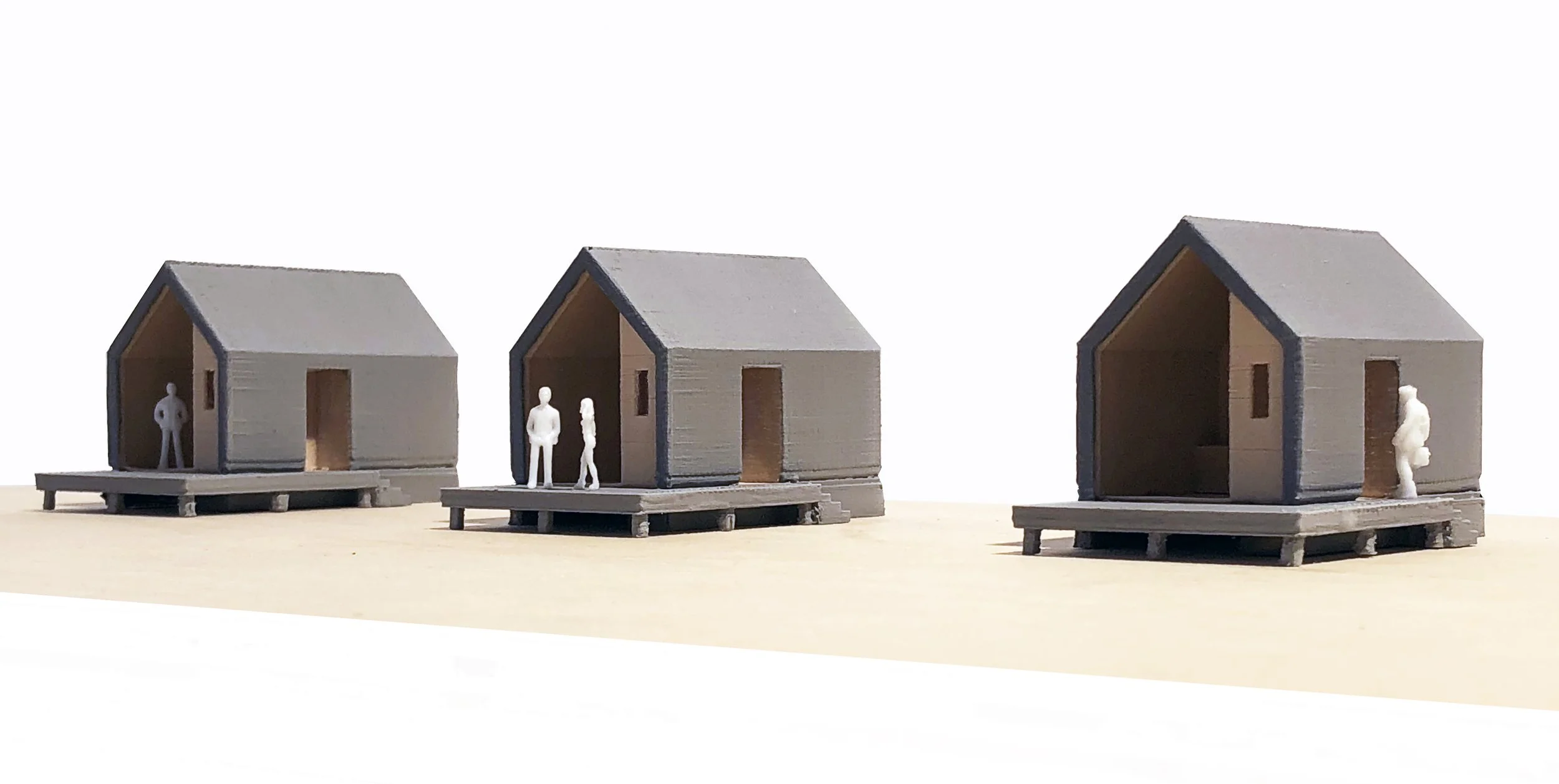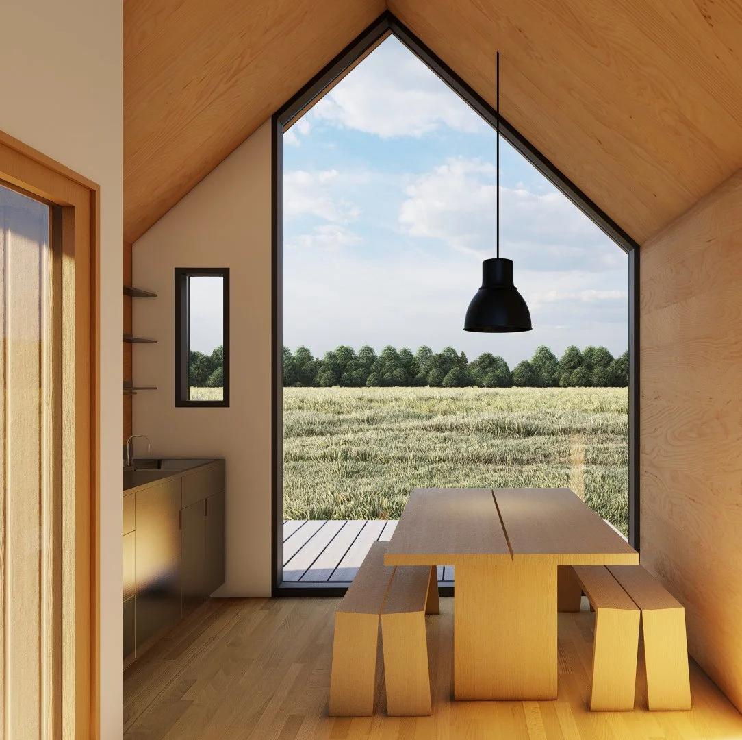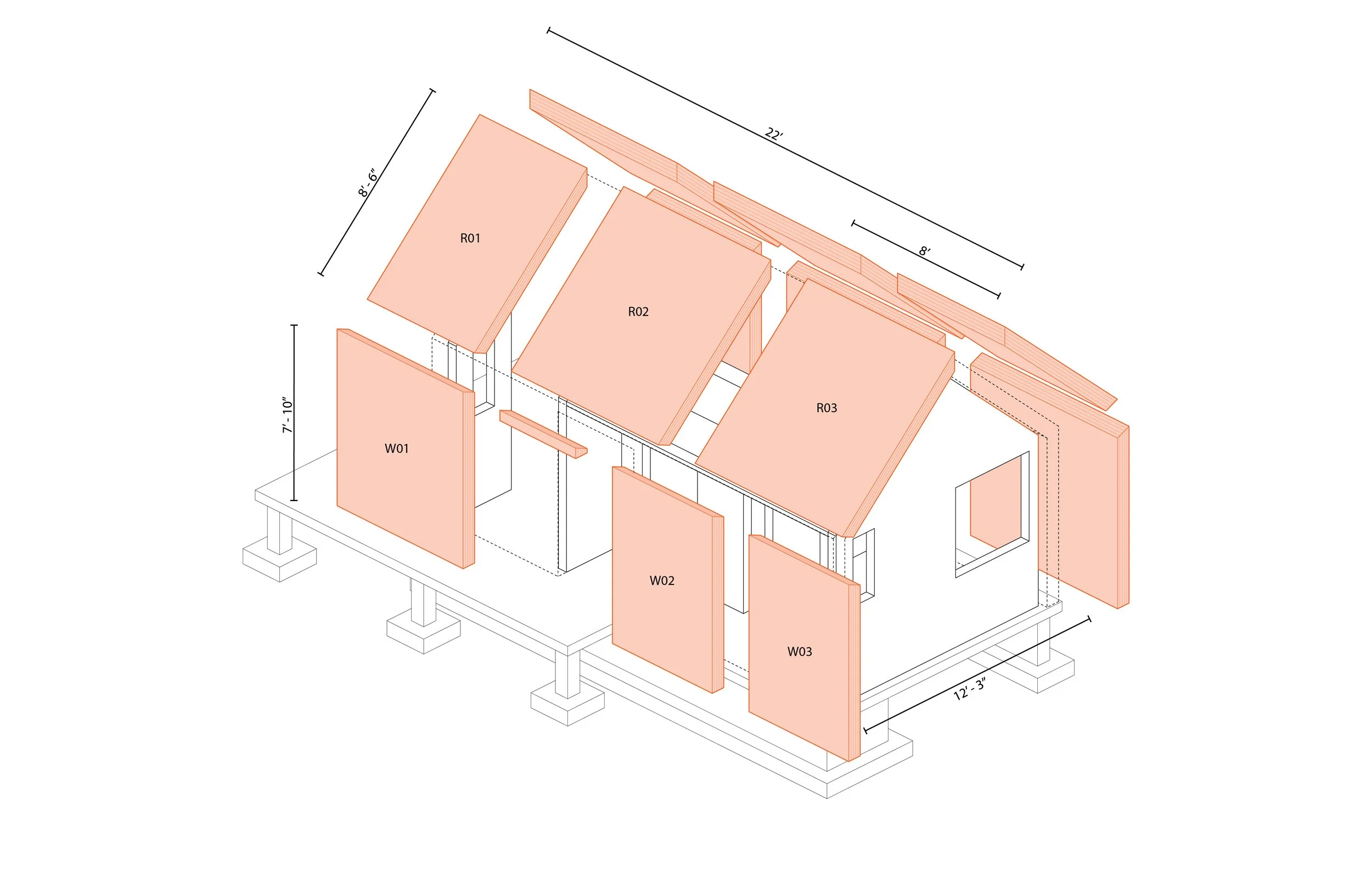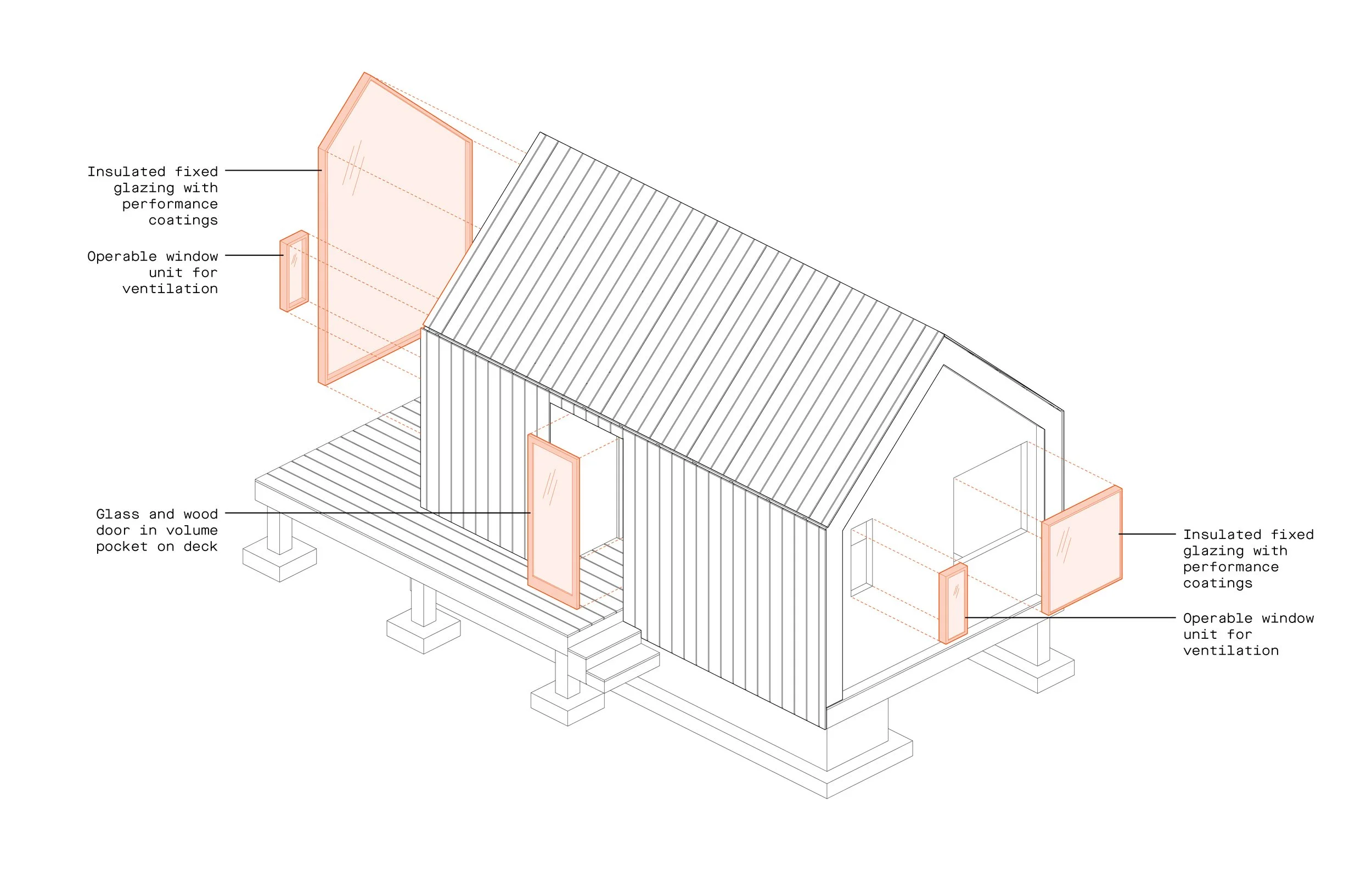 The first guest cabin is planned as protype and full scale mockup for the Gathering House, a new visitor center and conference space in development for the Menokin Foundation. It will serve to test out aspects of the mass timber application and work through the details and logistics of fabrication, transportation, and on-site deployment that will need to happen for the larger project. After the execution and installation of the prototype cabin additional cabins will be prefabricated offsite and brought to the site to create a cabin cluster.