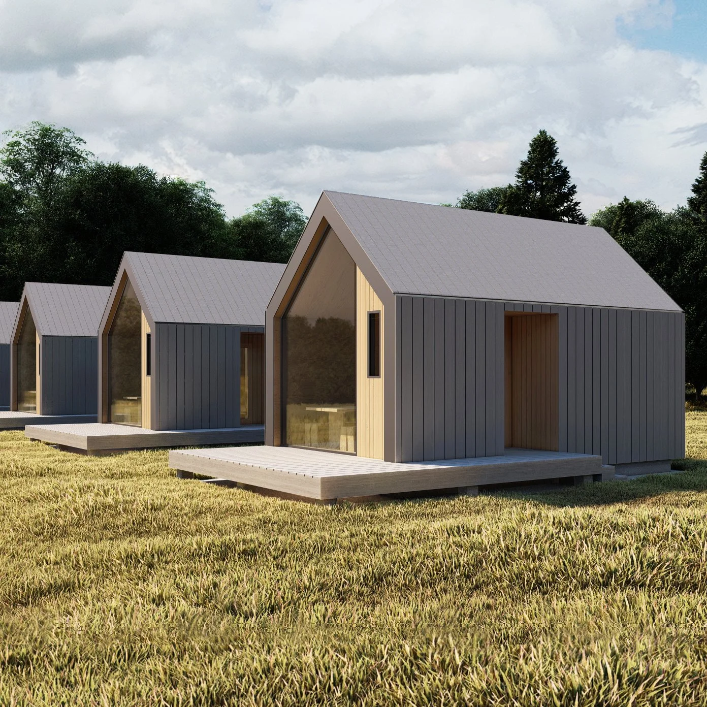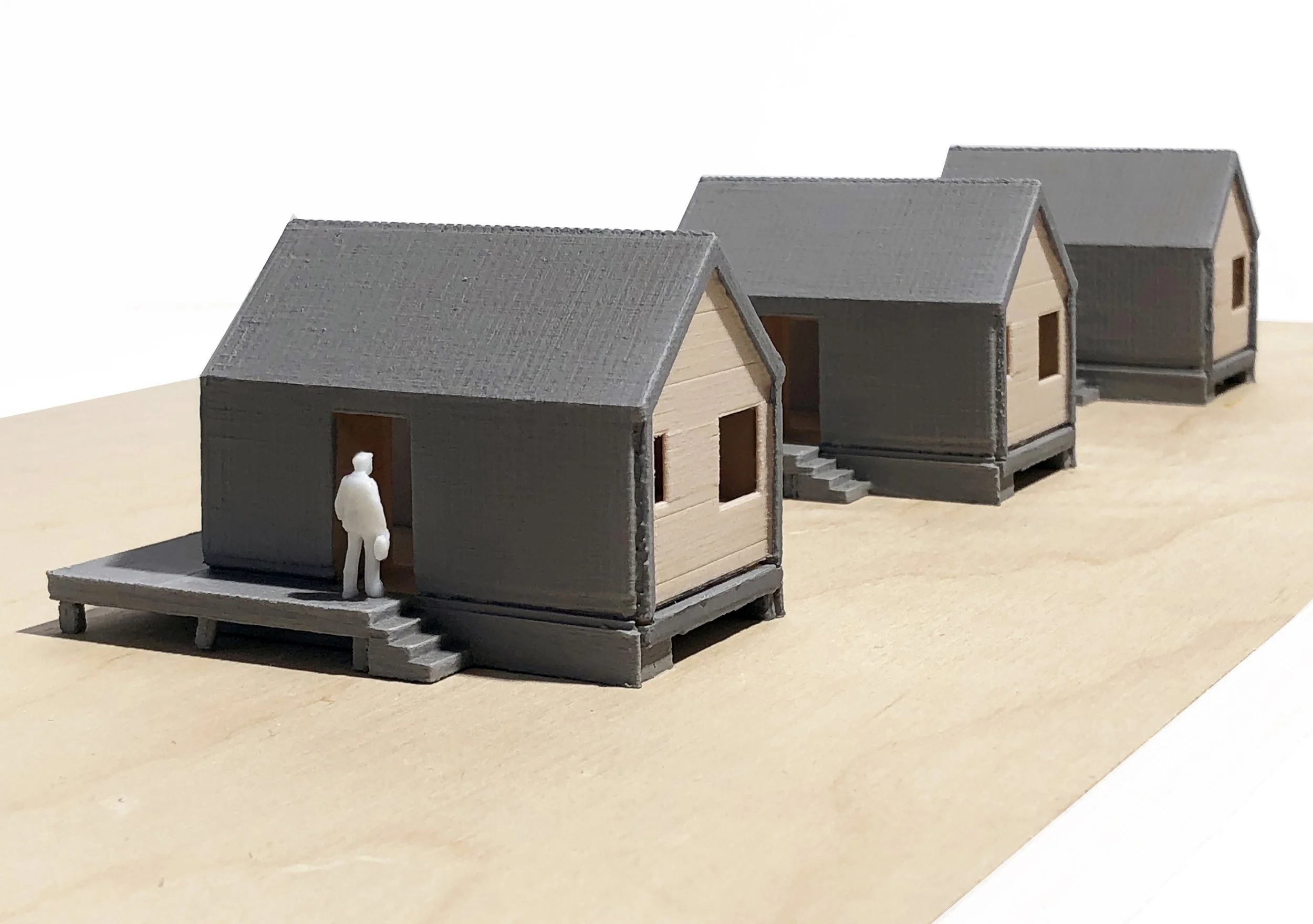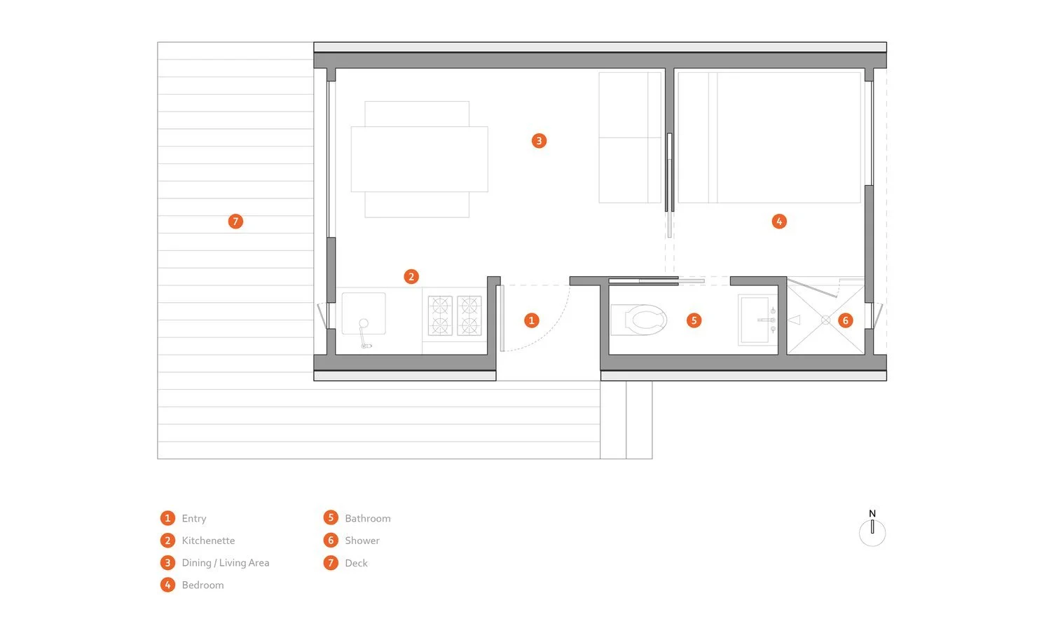 The first guest cabin is planned as protype and full scale mockup for the Gathering House, a new visitor center and conference space in development for the Menokin Foundation. It will serve to test out aspects of the mass timber application and work through the details and logistics of fabrication, transportation, and on-site deployment that will need to happen for the larger project. After the execution and installation of the prototype cabin additional cabins will be prefabricated offsite and brought to the site to create a cabin cluster.
